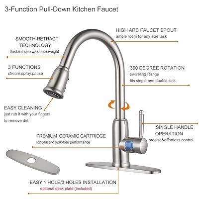 This tutorial shows you how to install a pull down spray kitchen faucet. A spray function makes rinsing dishes and cleaning out the sink after use so much easier. Allows you to control water with one hand and reaches beyond the. They move the hose from the point of friction. 3.9 out of 5 stars 22. So, you will enjoy flexibility in controlling the water flow volume. Some hoses are difficult to get back into the spout. Includes stream 50 percent more spray power than most moen pulldown and pullout faucets. Now, i'll break down the. This sprayer doesn't require professional installation and allows you to handle the full installation yourself. A pull down kitchen faucet is one type of faucet in which the faucet head is pulled straight towards the bottom of the kitchen sink.such faucets have a tall sprayer head and usually comes with a shorter hose (but not always shorter). Pull down kitchen faucet sprayer are those with a detachable spray head attached to a hose that passes through the body of the faucet. To purchase the faucet shown go here.